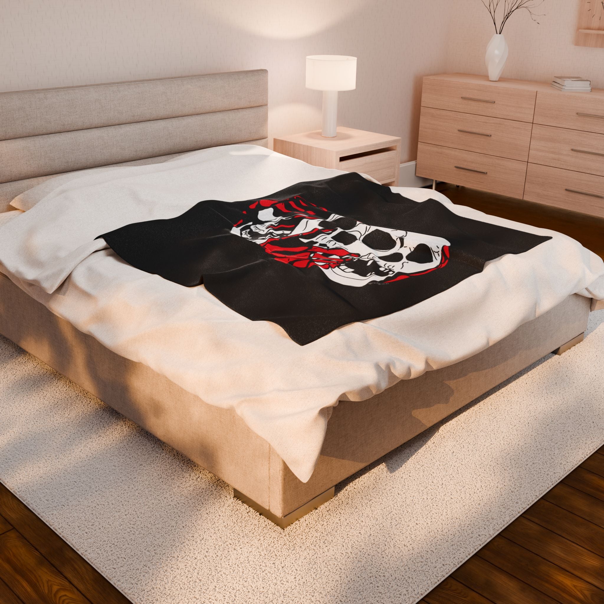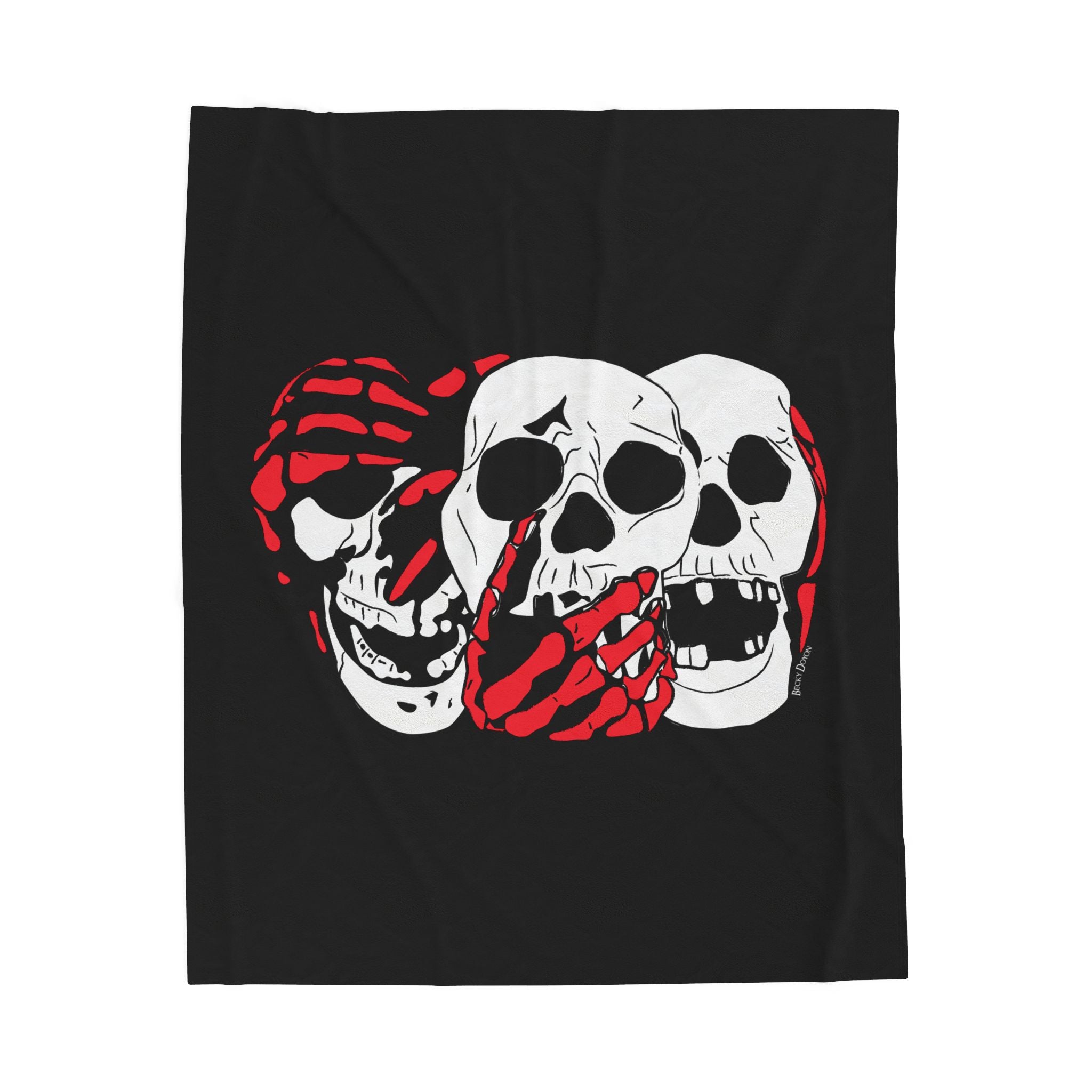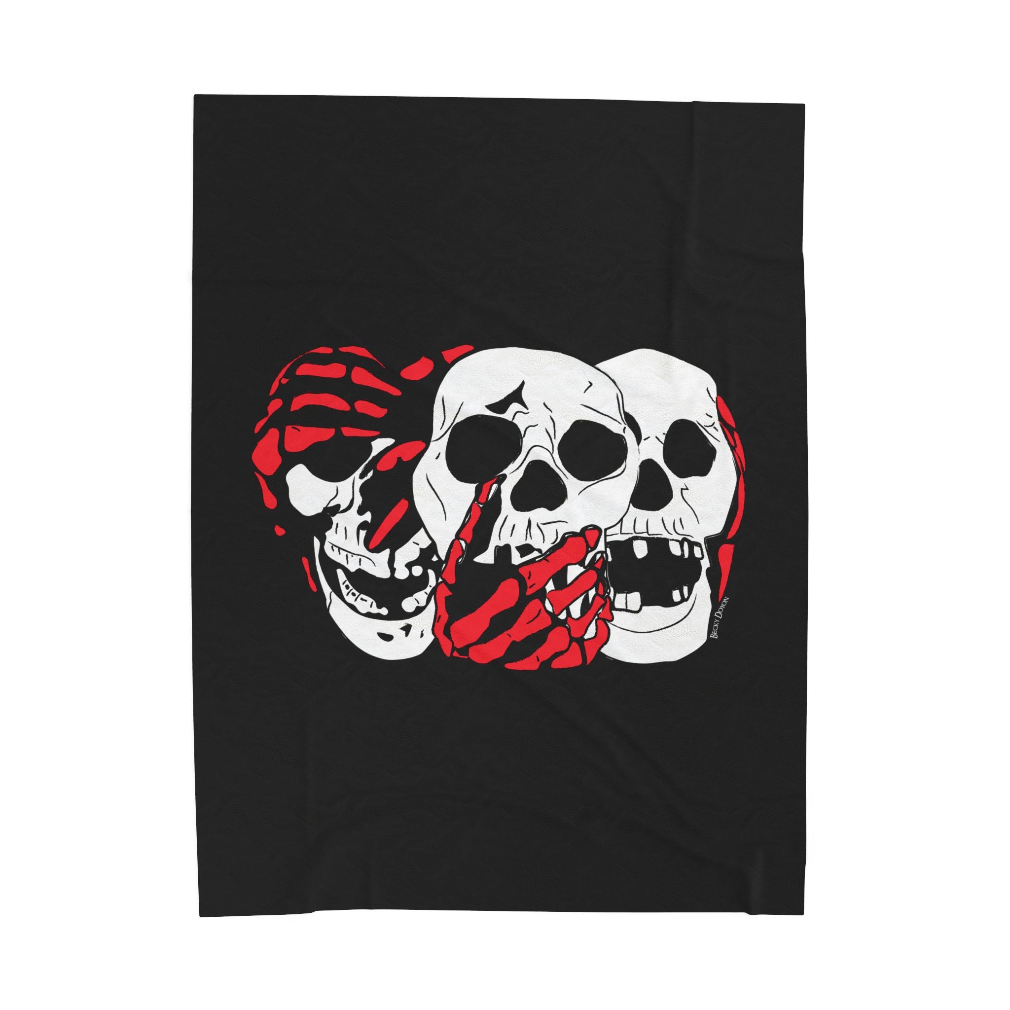 3 Skulls (With Red) Velveteen Plush Blanket (Various Sizes)