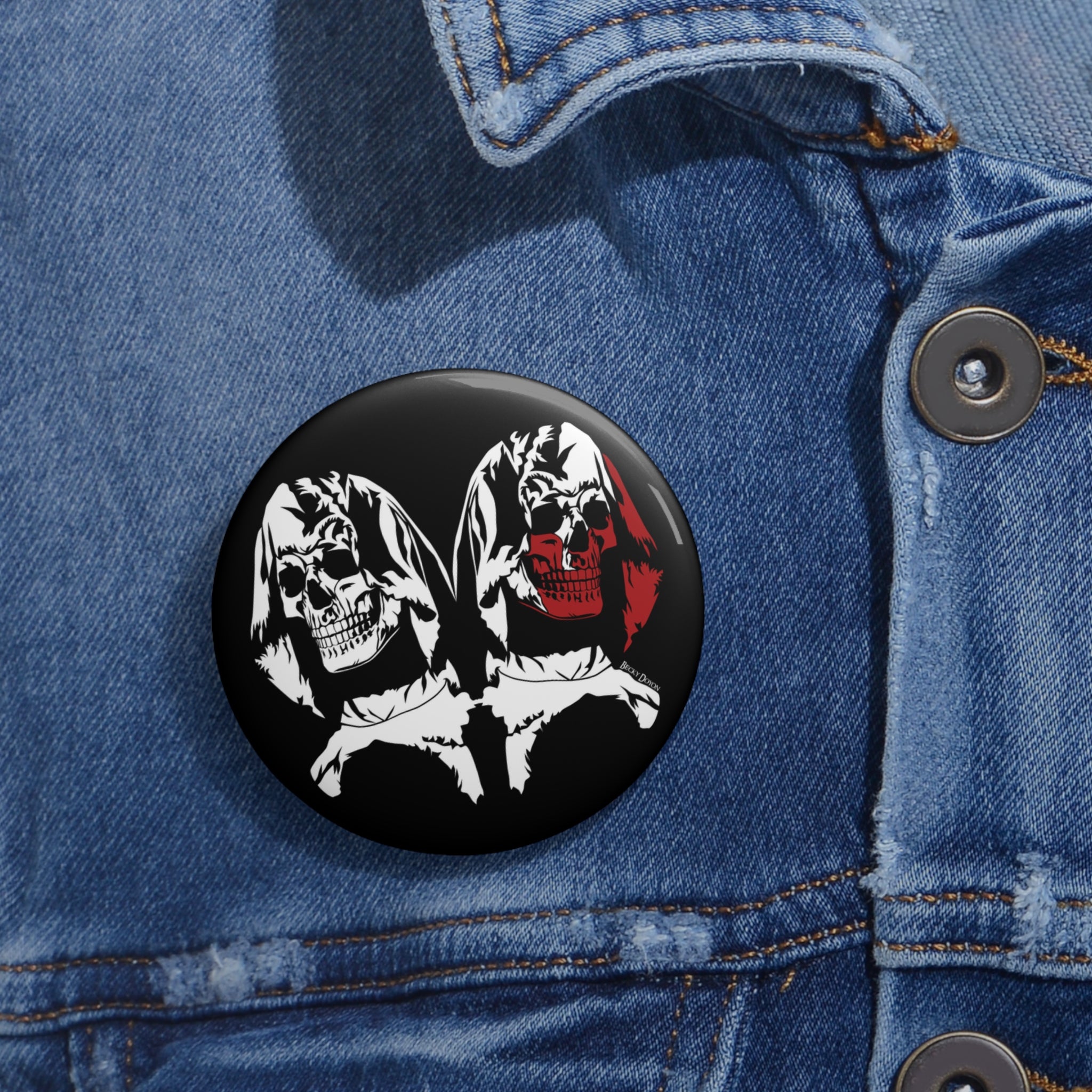 These Custom Pin Buttons are made from metal, yet are lightweight and durable with a strong safety pin.