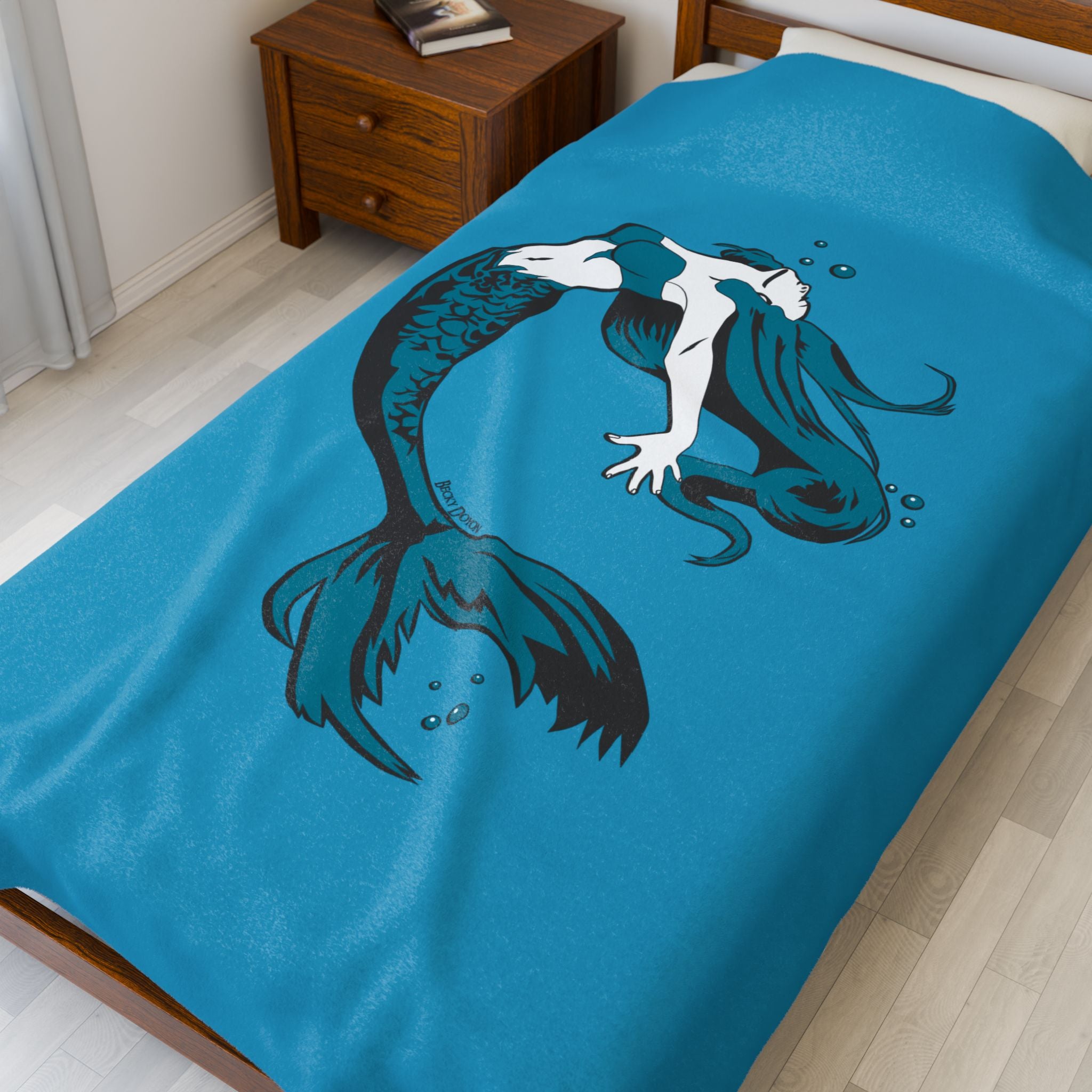 Mermaid Velveteen Plush Blanket (Aqua) (Various Sizes)
